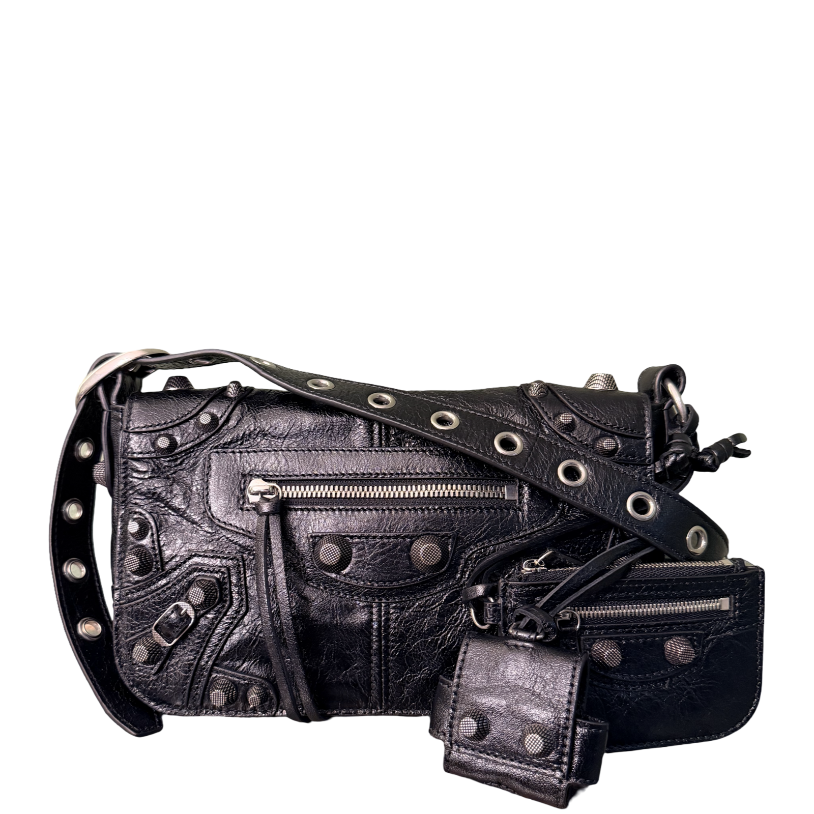 BALENCIAGA BLACK LE CAGOLE FLAP CROSSBODY BAG