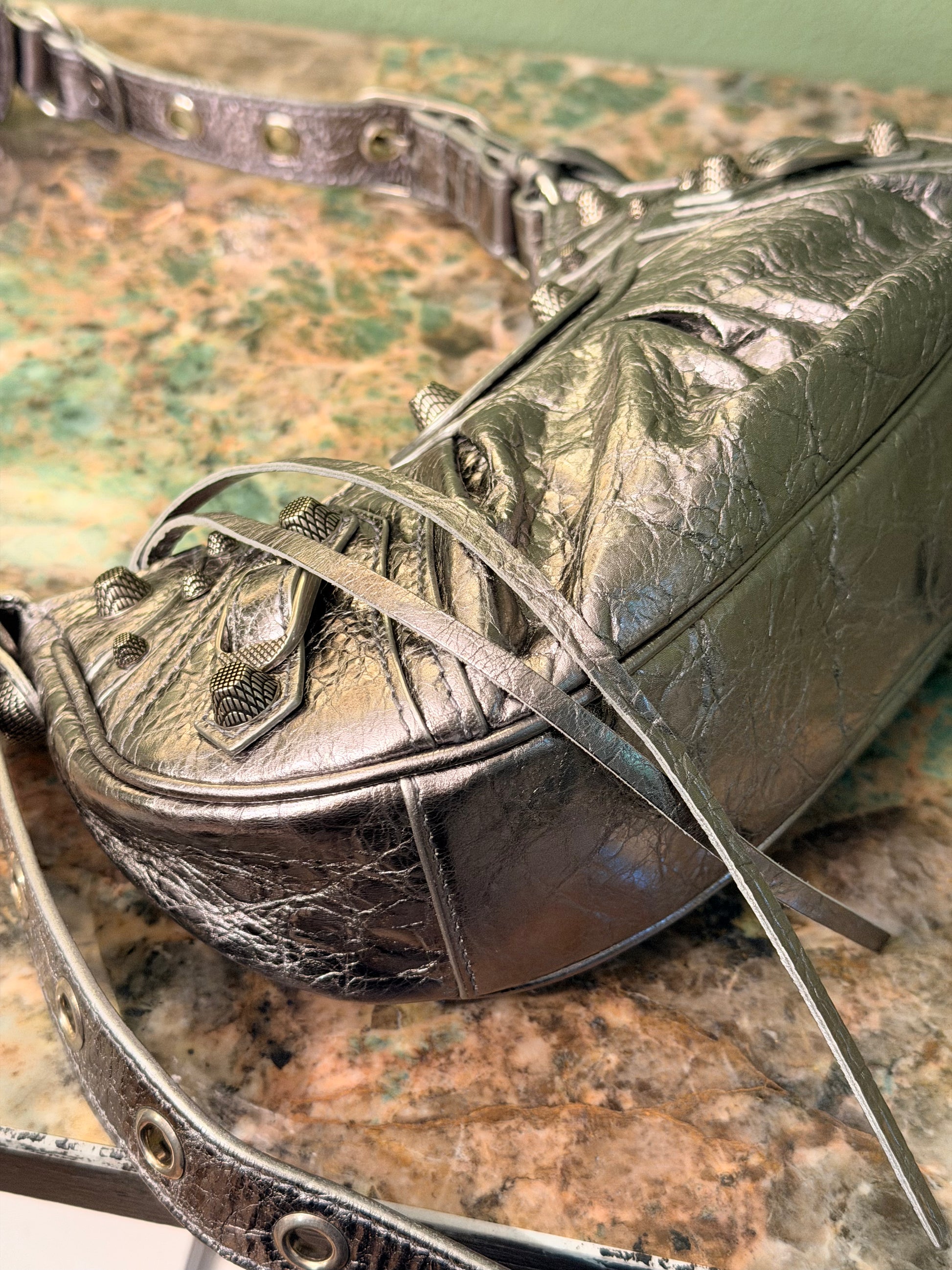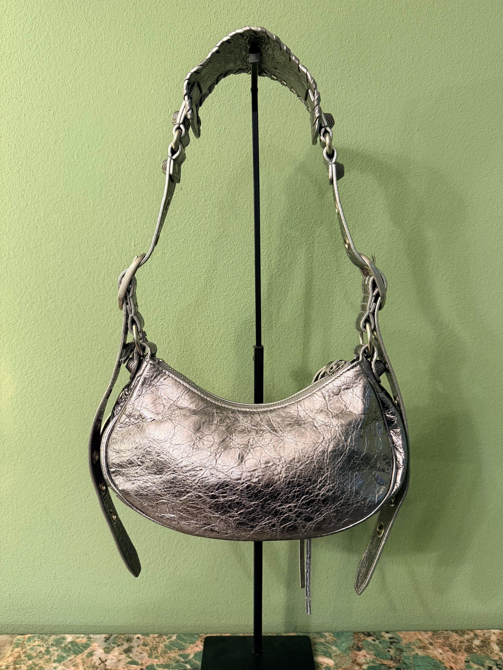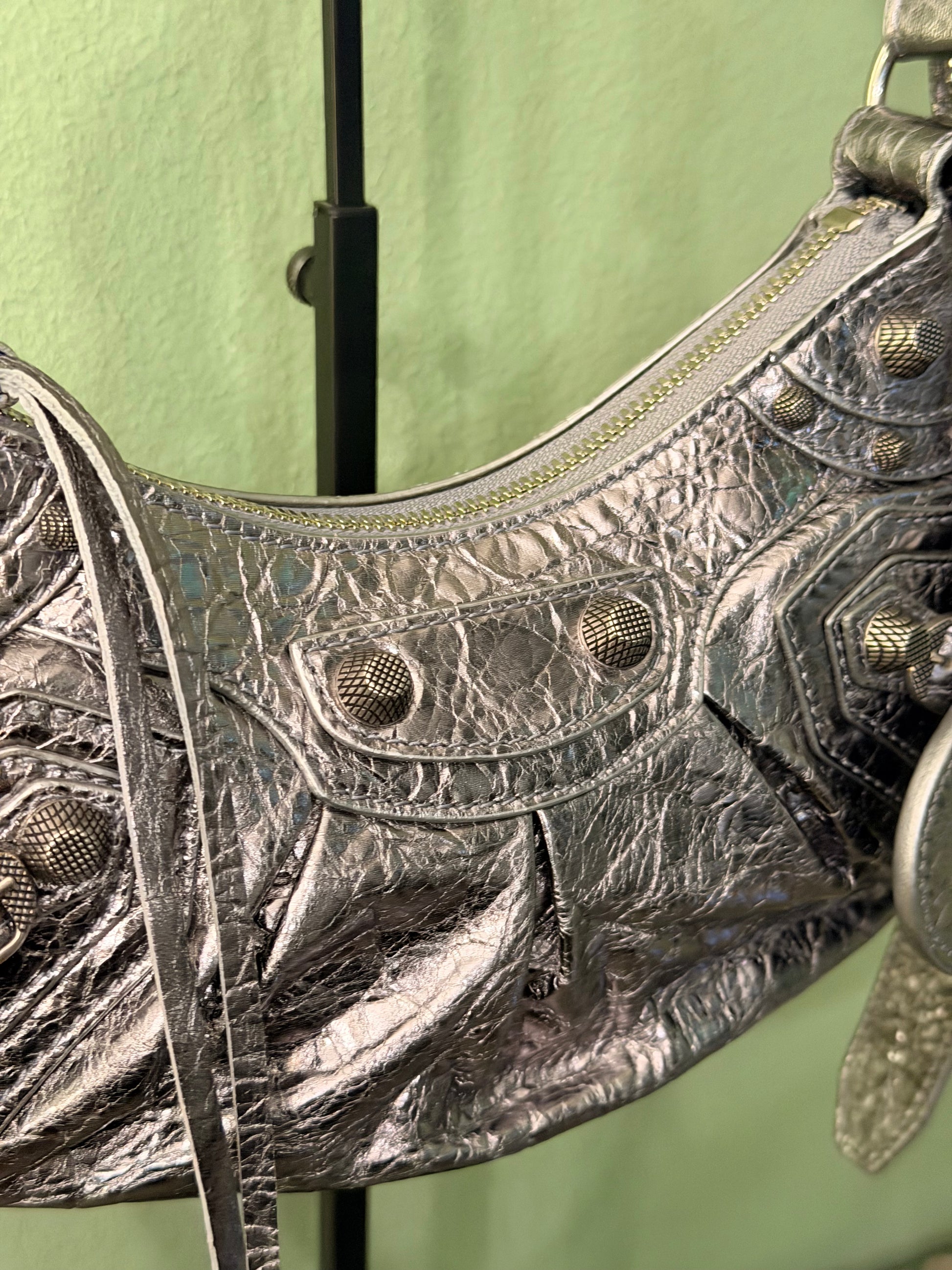 BALENCIAGA SILVER LE CAGOLE XS SHOULDER BAG