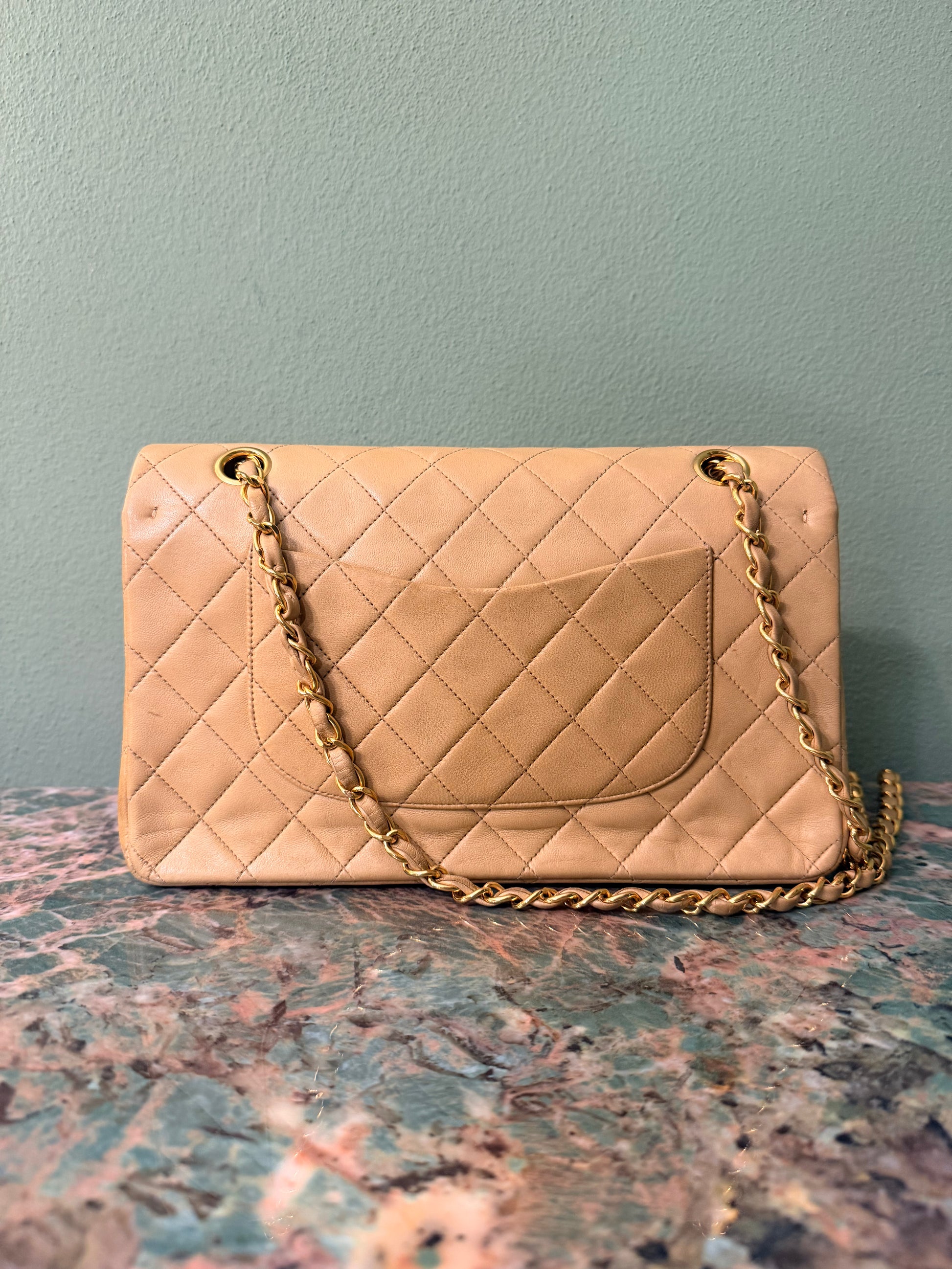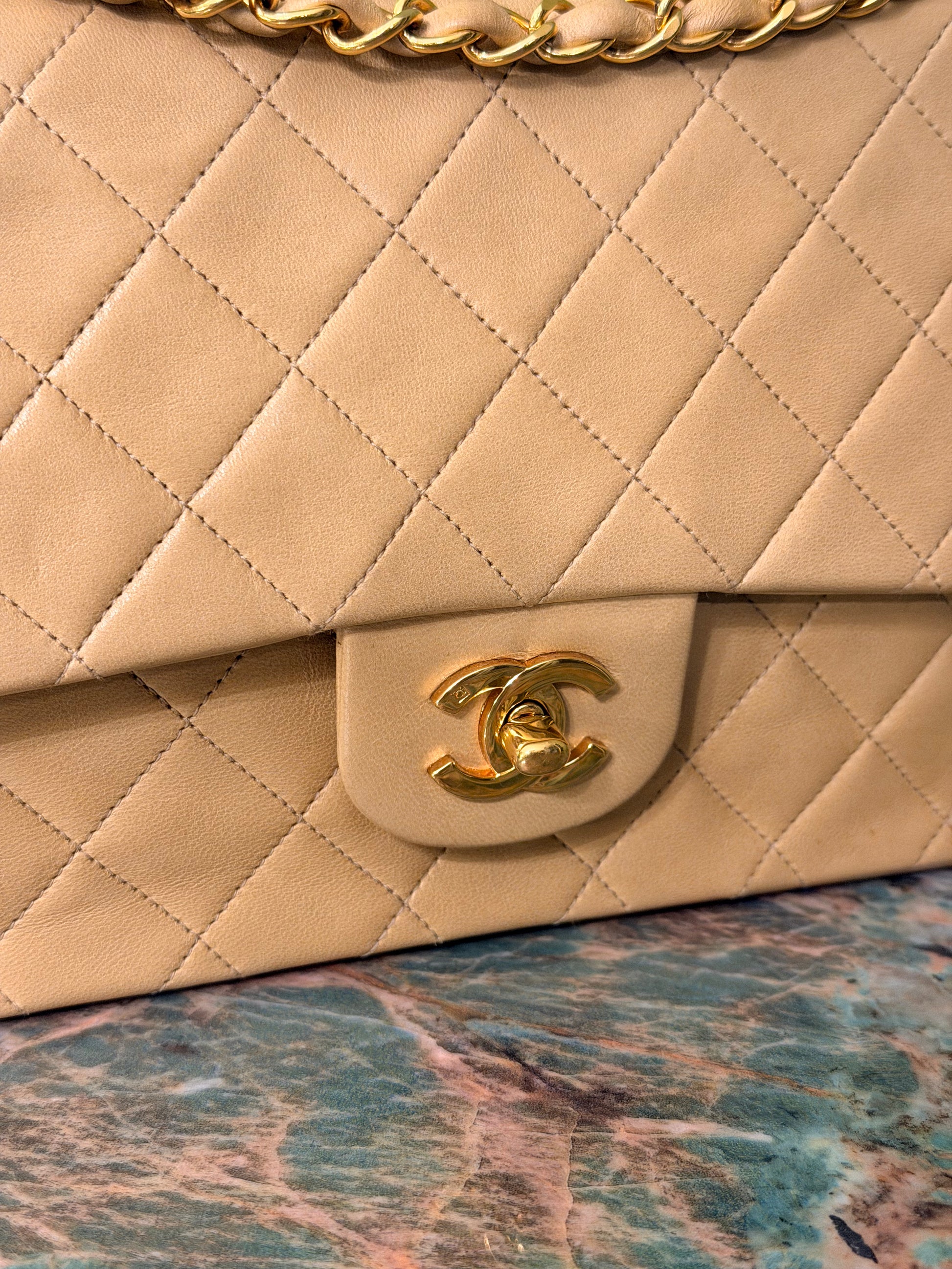 CHANEL BEIGE LAMBSKIN TIMELESS MEDIUM CLASSIC DOUBLE FLAP SHOULDER BAG