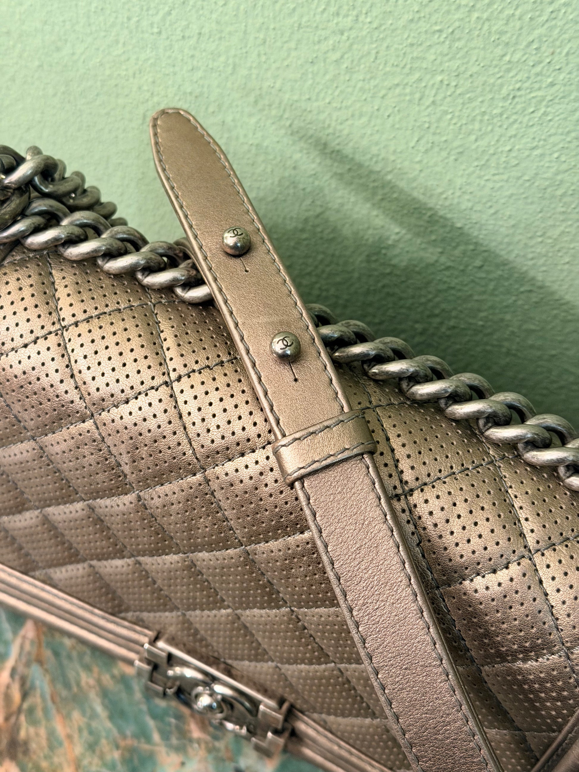 CHANEL CHAMPAGNE PERFORATED MEDIUM BOY CROSSBODY BAG