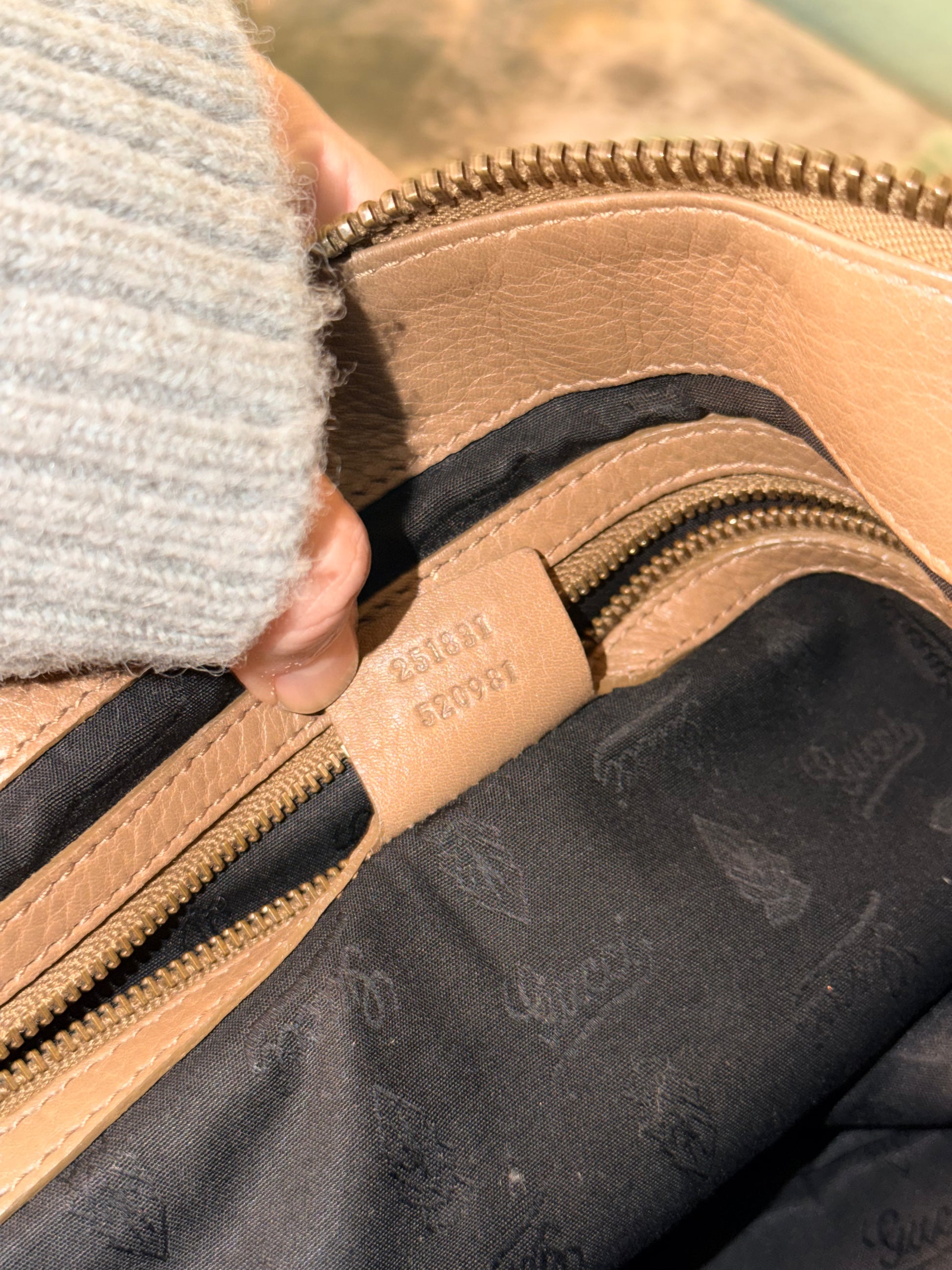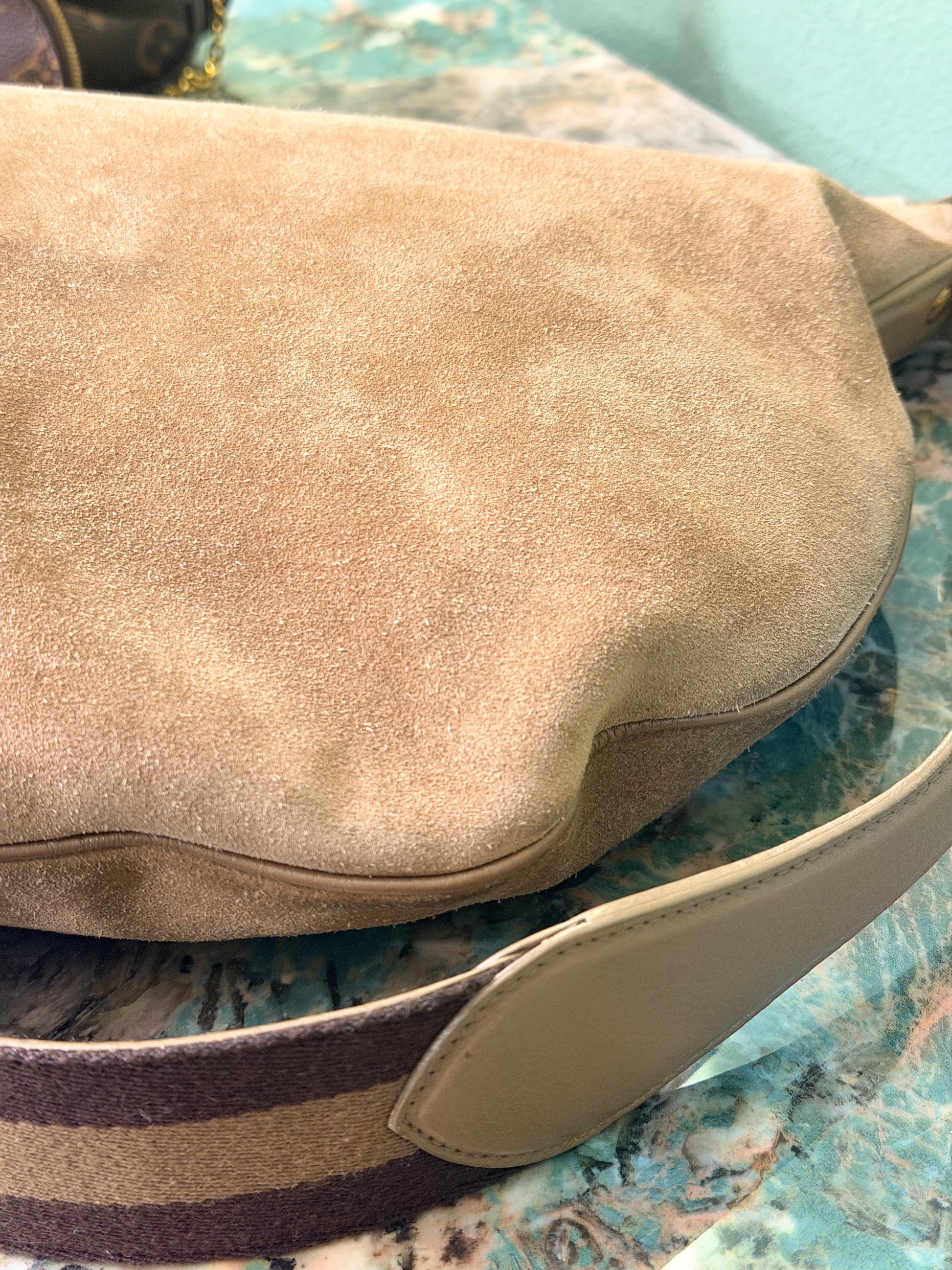 GUCCI BEIGE SUEDE HALF MOON SHOULDER BAG