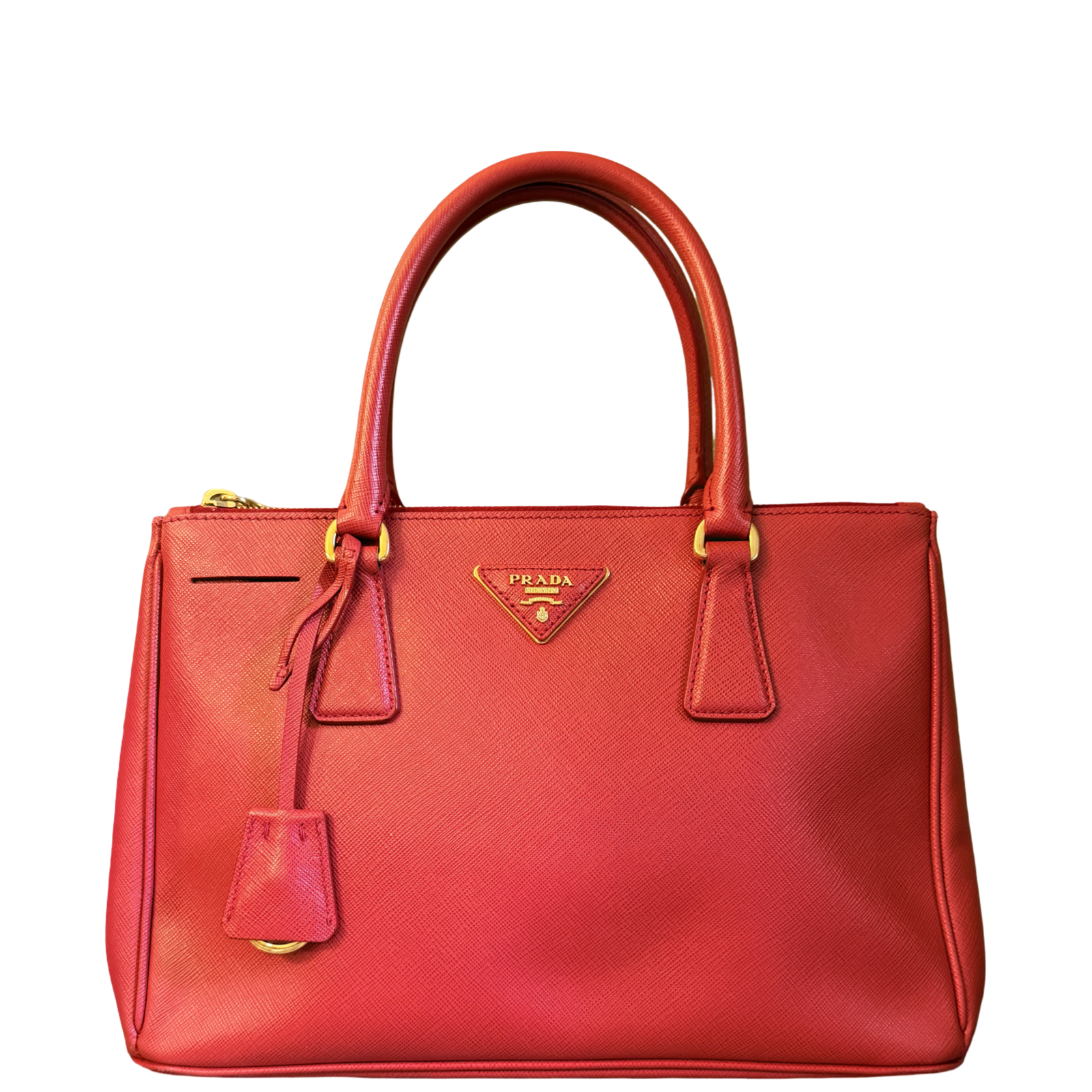 PRADA RED SAFFIANO SMALL GALLERIA HANDBAG