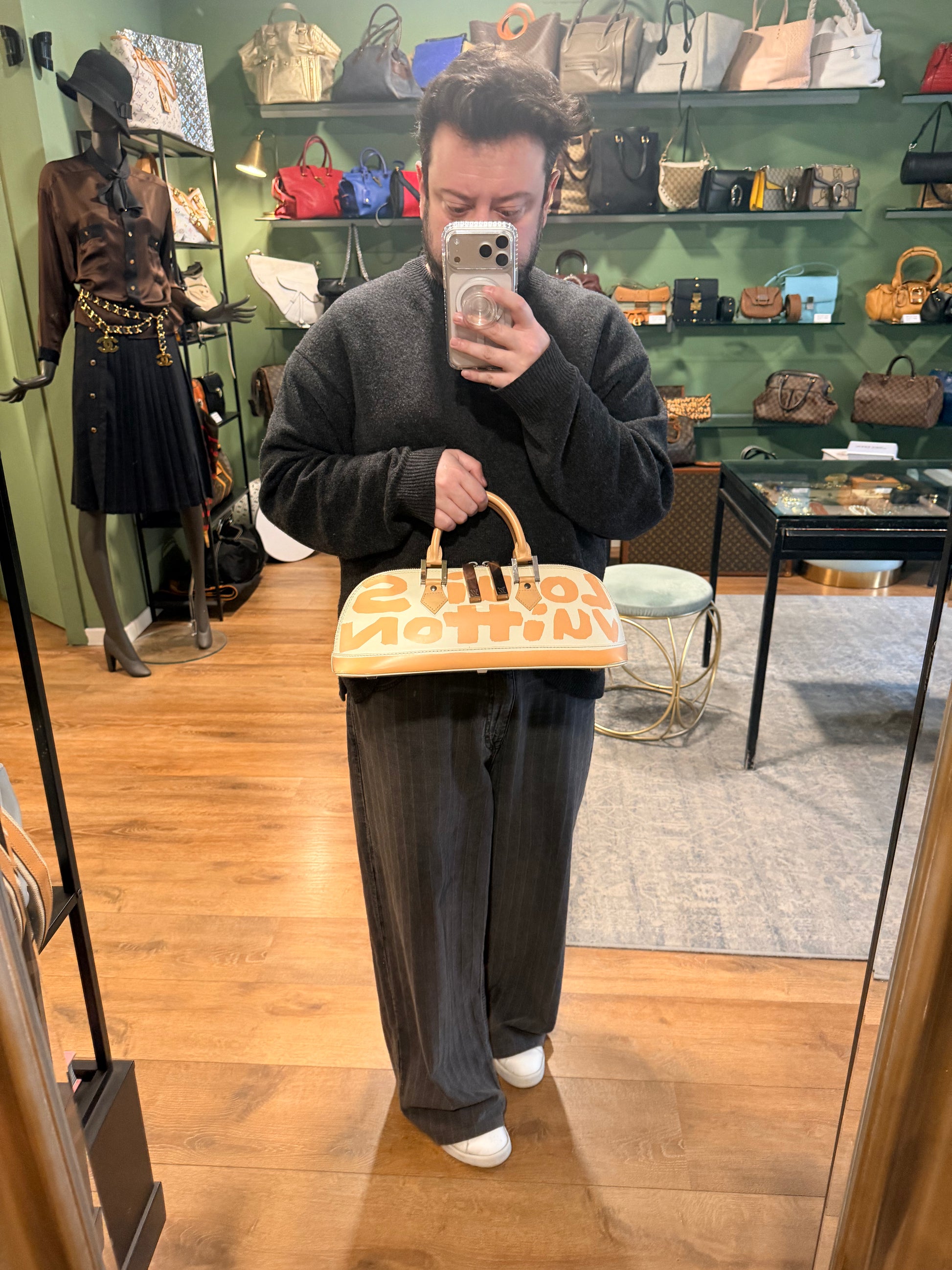 STEPHEN SPROUSE X LOUIS VUITTON BEIGE GRAFFITI ALMA EAST WEST HANDBAG