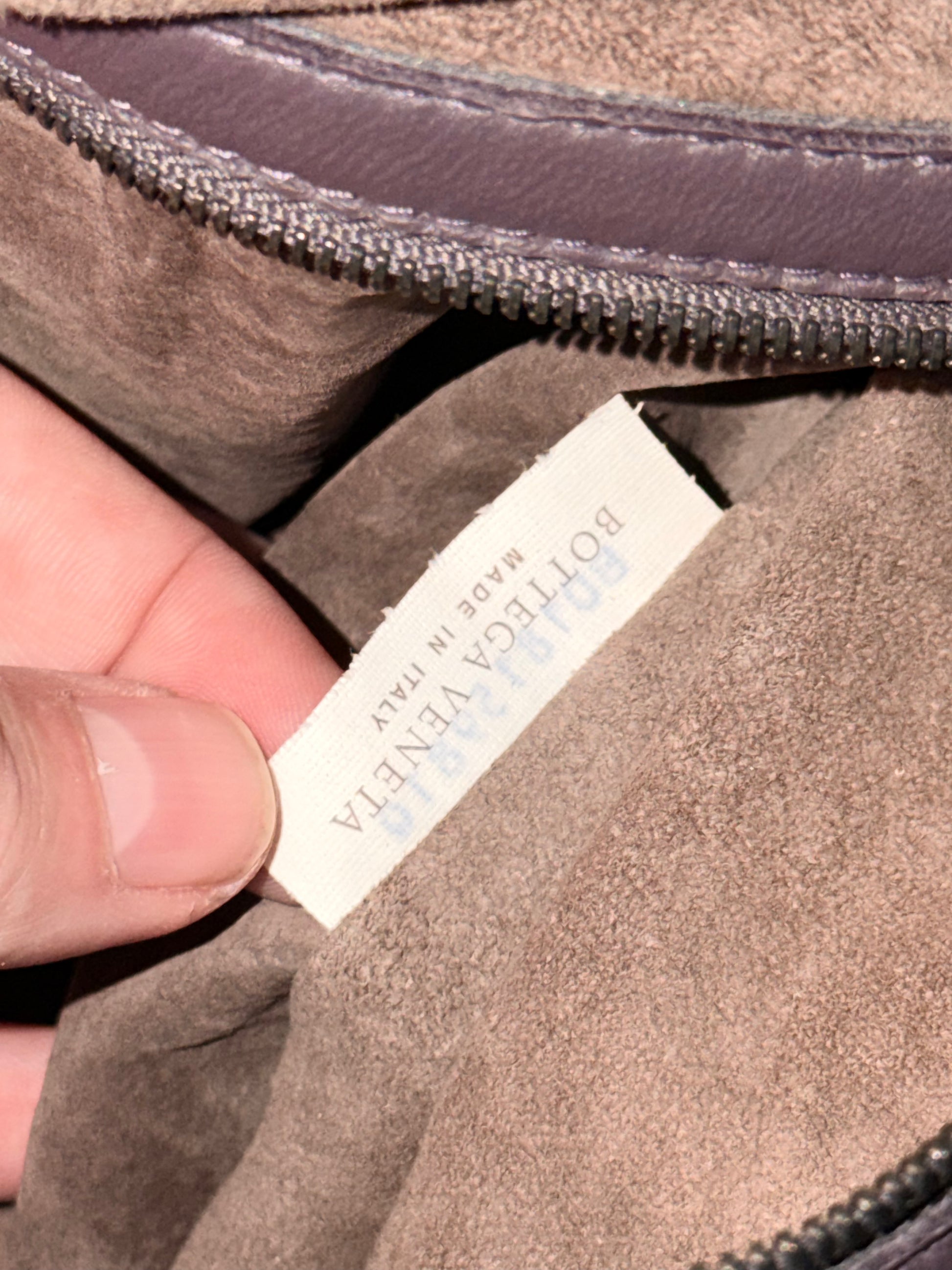 Interno in camoscio con una tasca con zip e una tasca di cortesia