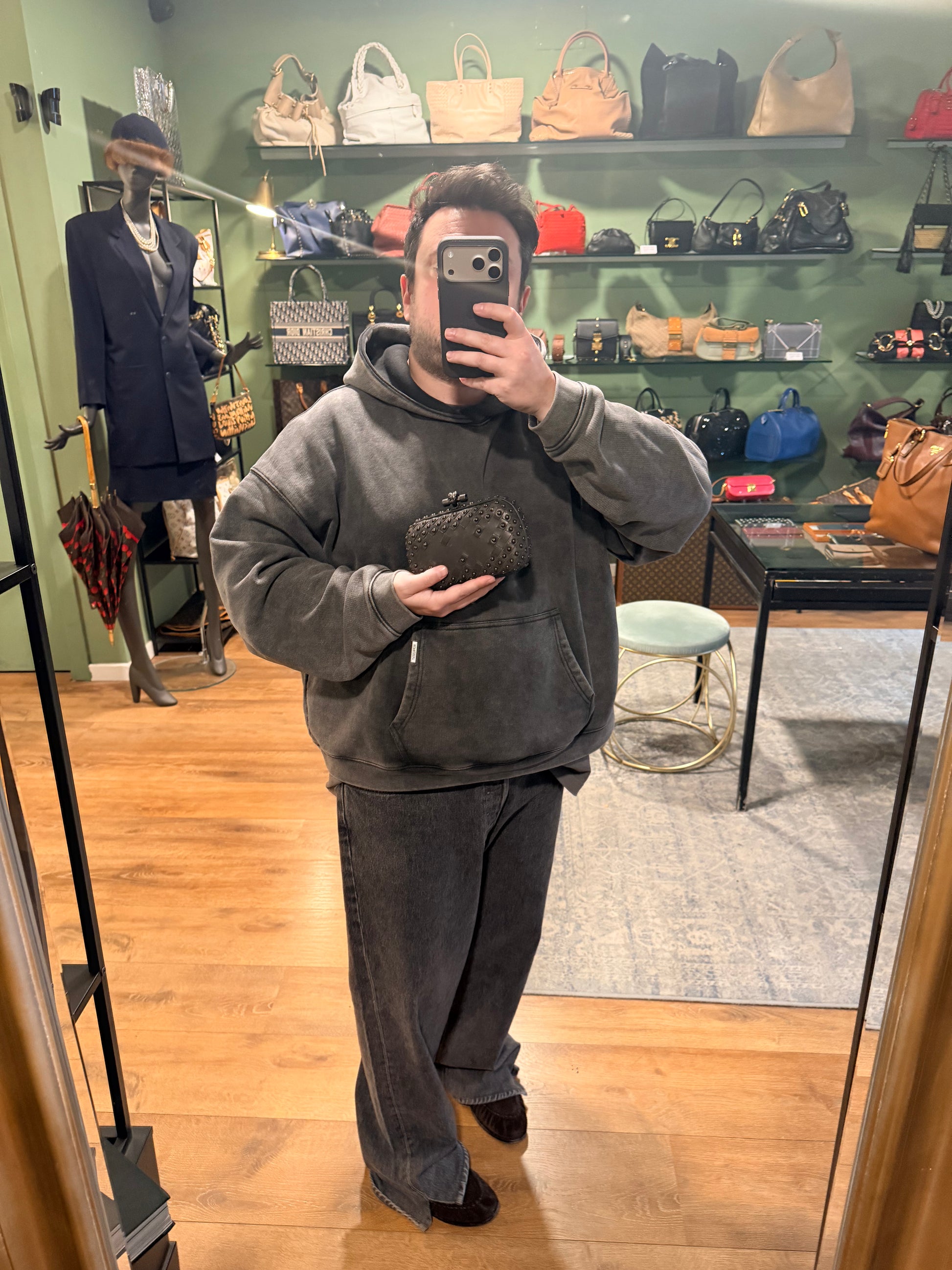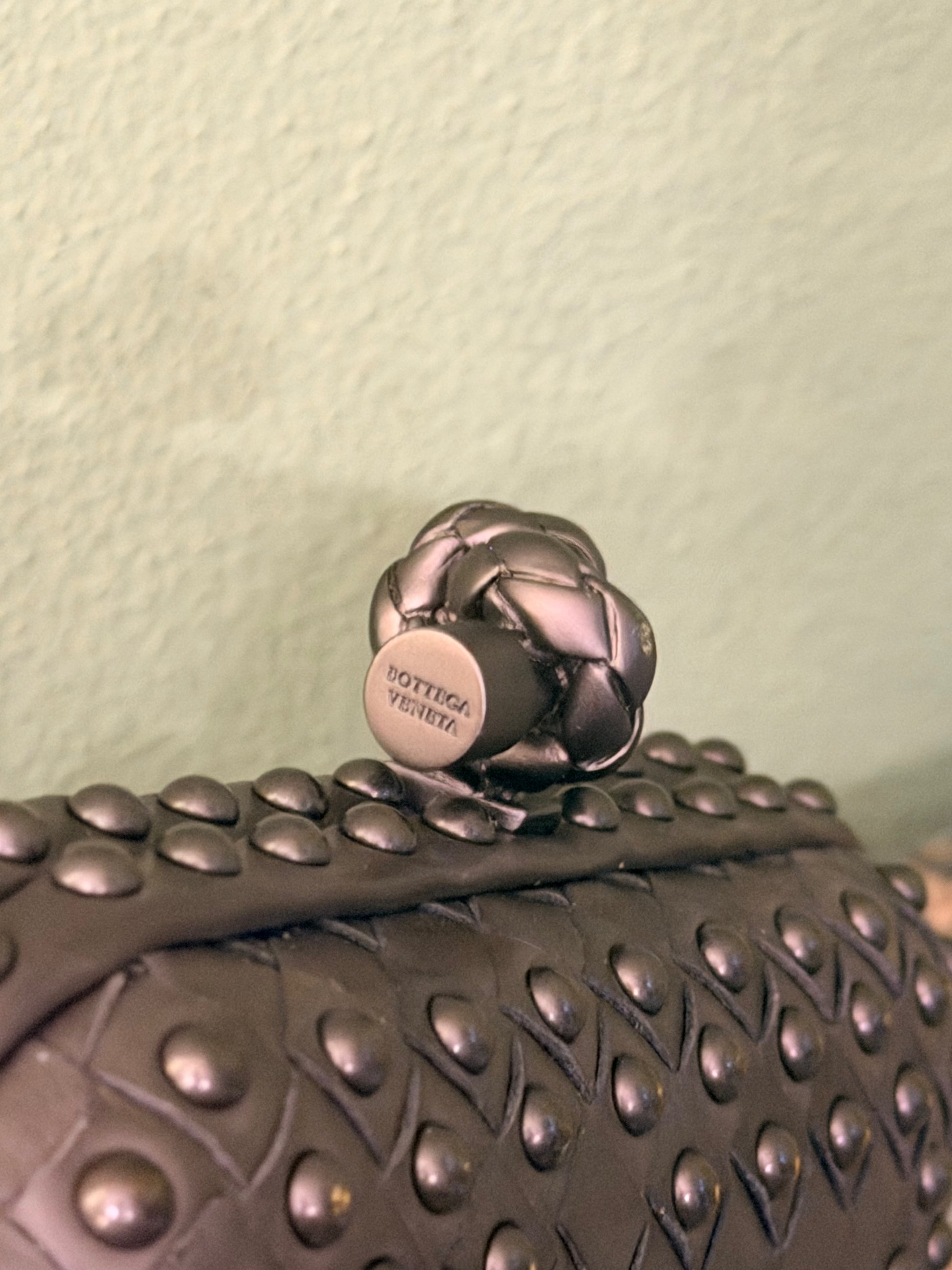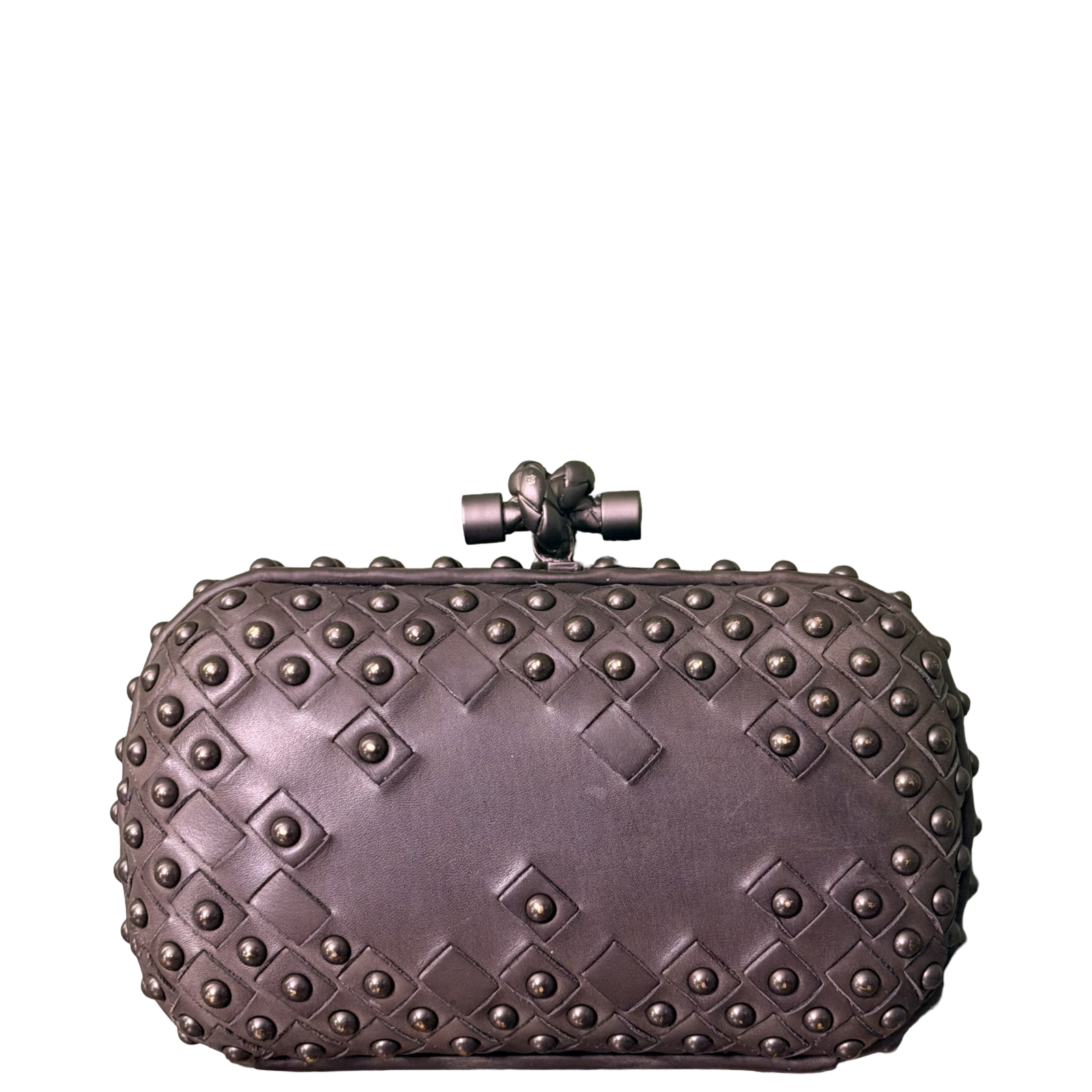 BOTTEGA VENETA GRAY STUDDED KNOT CLUTCH