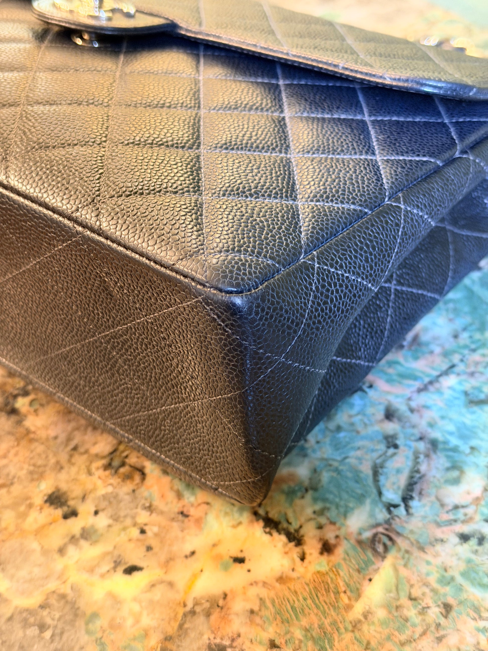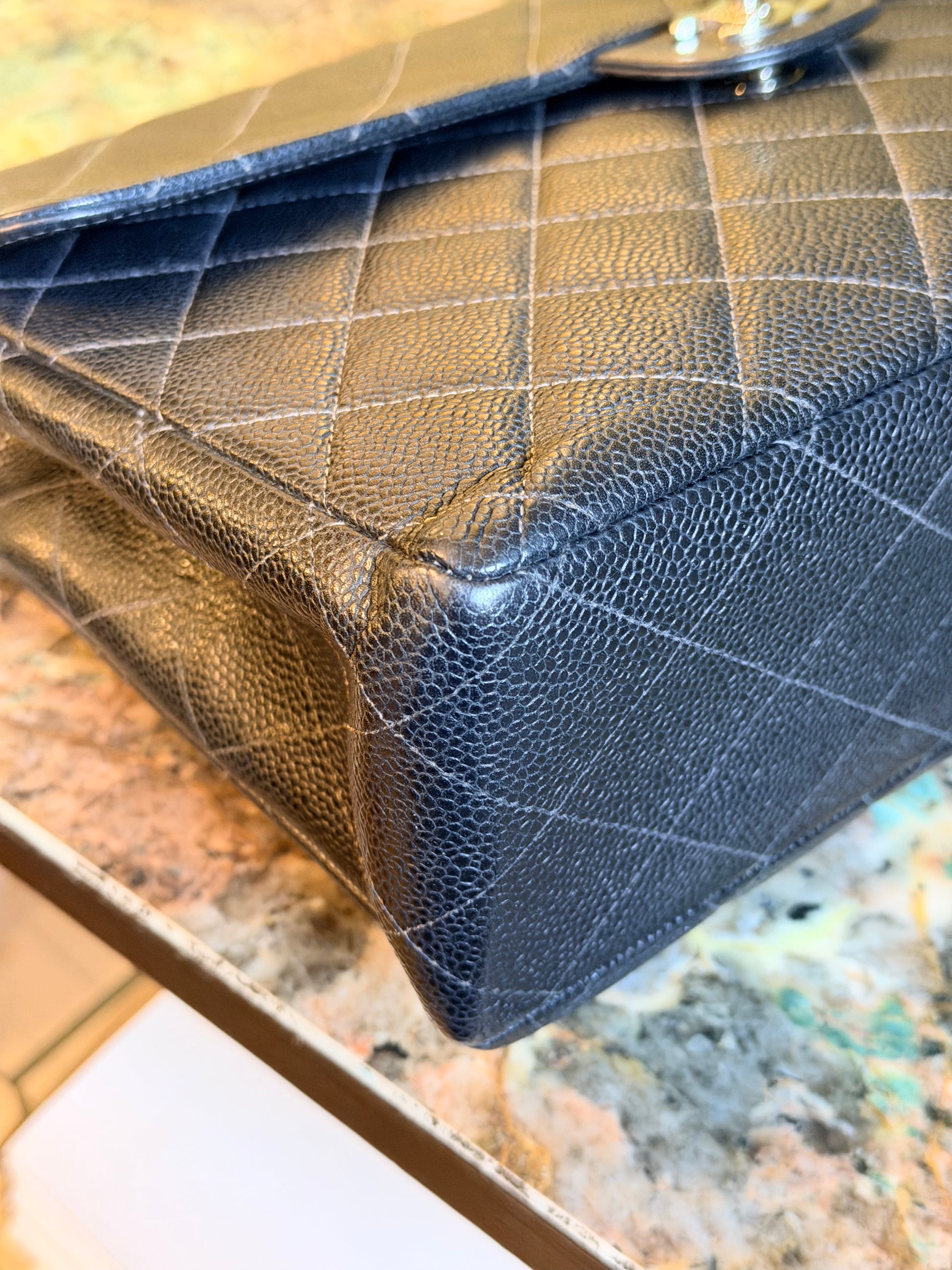 CHANEL BLACK CAVIAR SINGLE FLAP TIMELESS JUMBO SHOULDER BAG