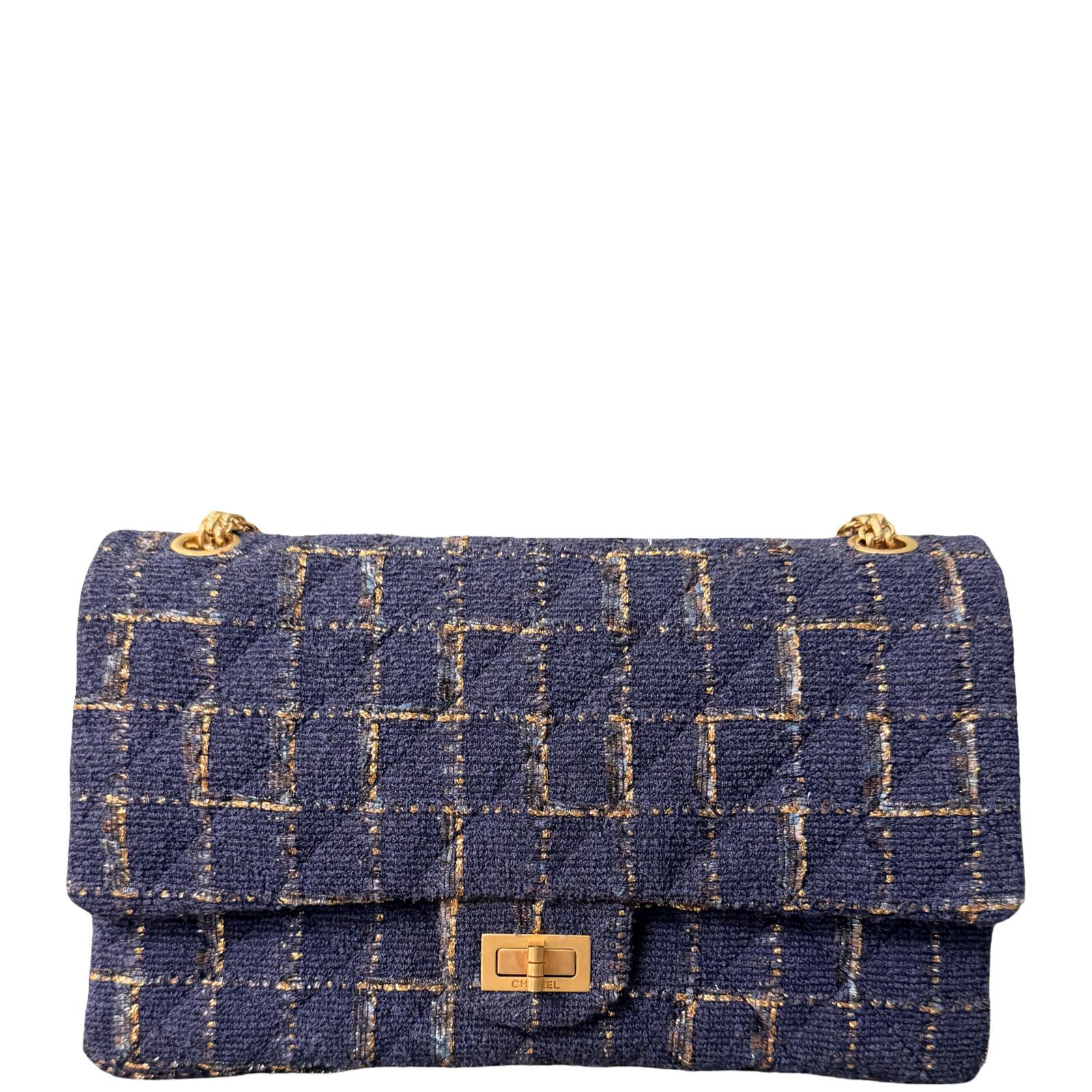 CHANEL BLUE TWEED JUMBO 2.55 REISSUE SHOULDER BAG