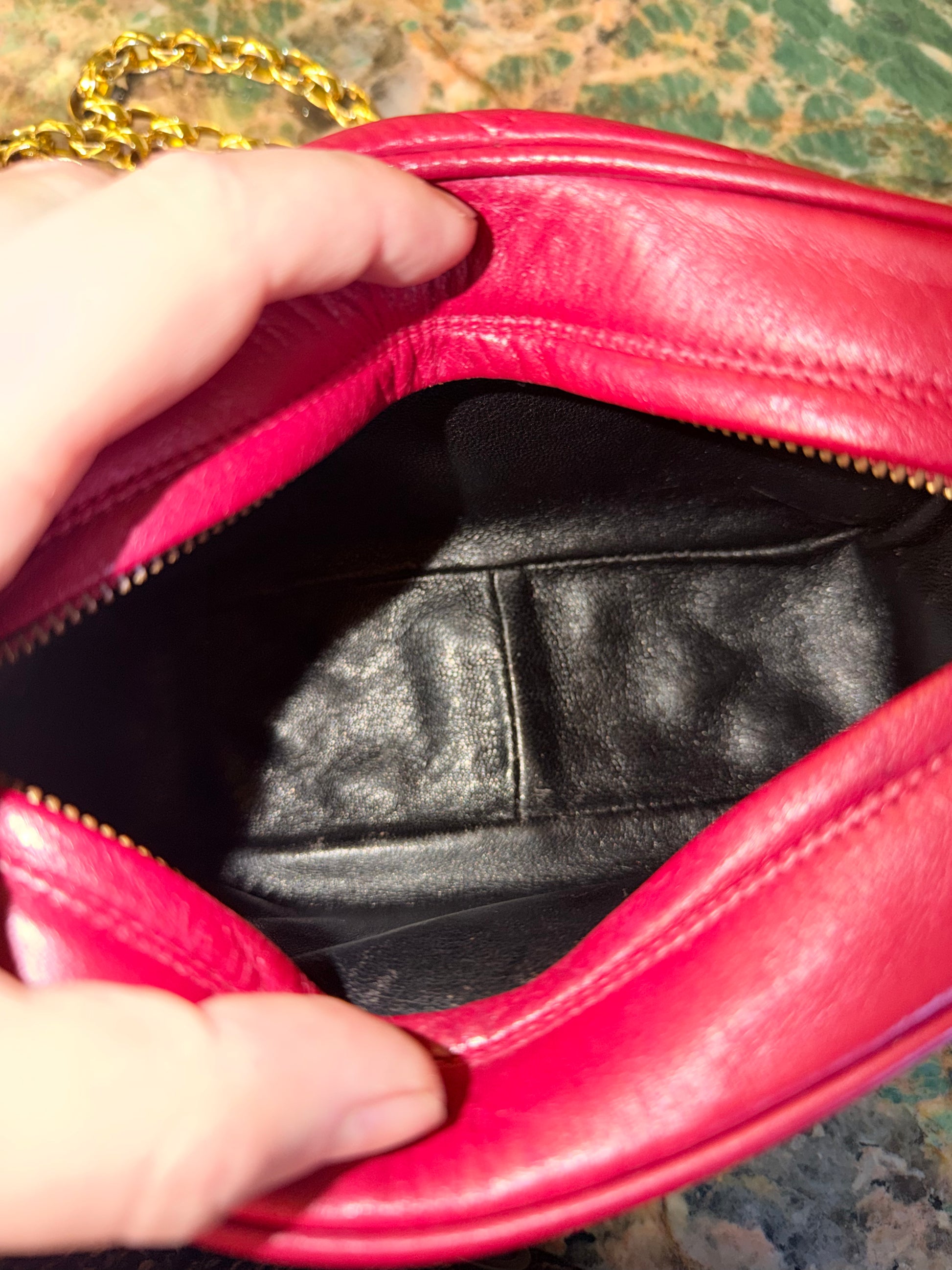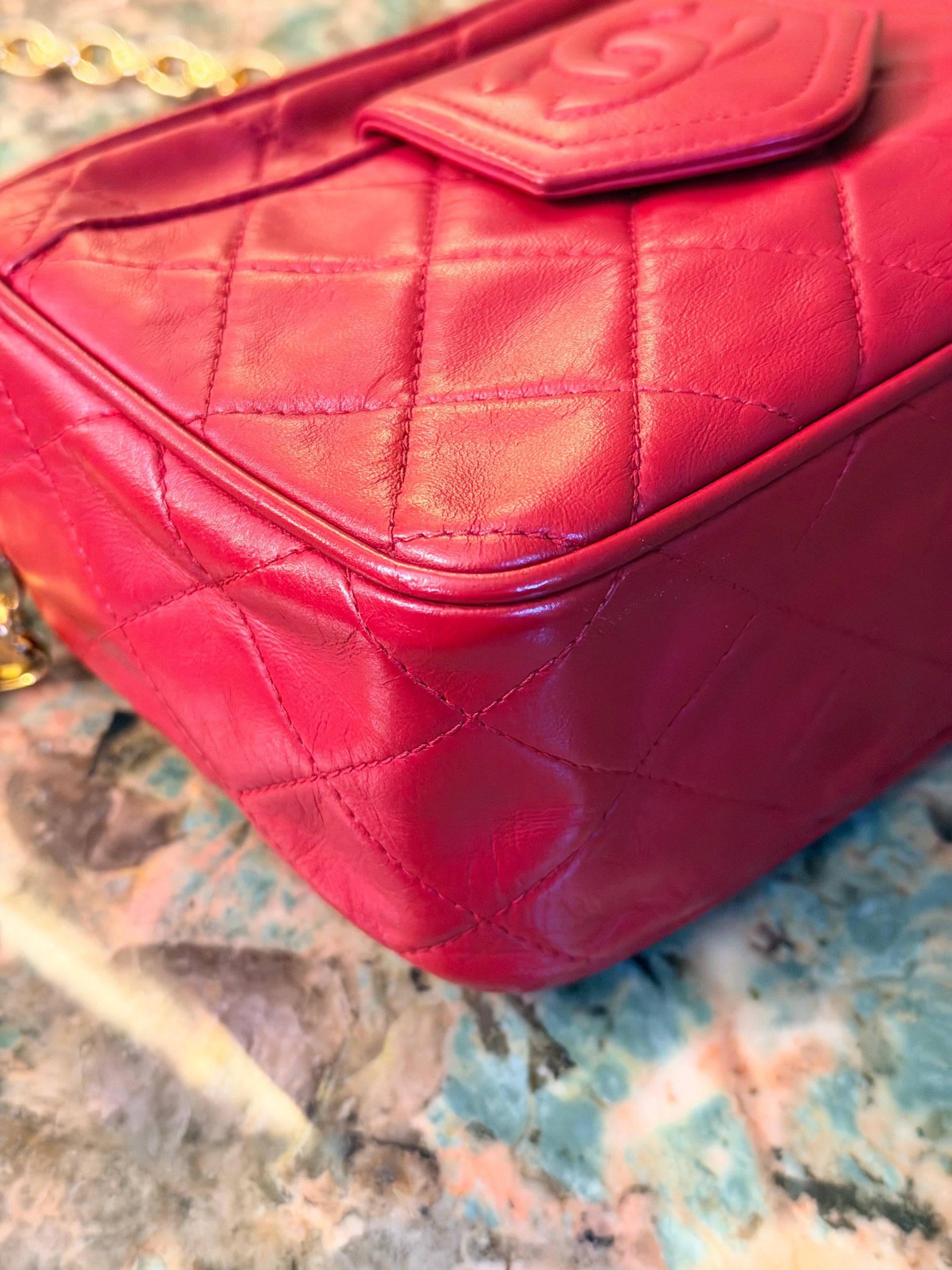 CHANEL RED QUILTED SMALL CAMERA BAG