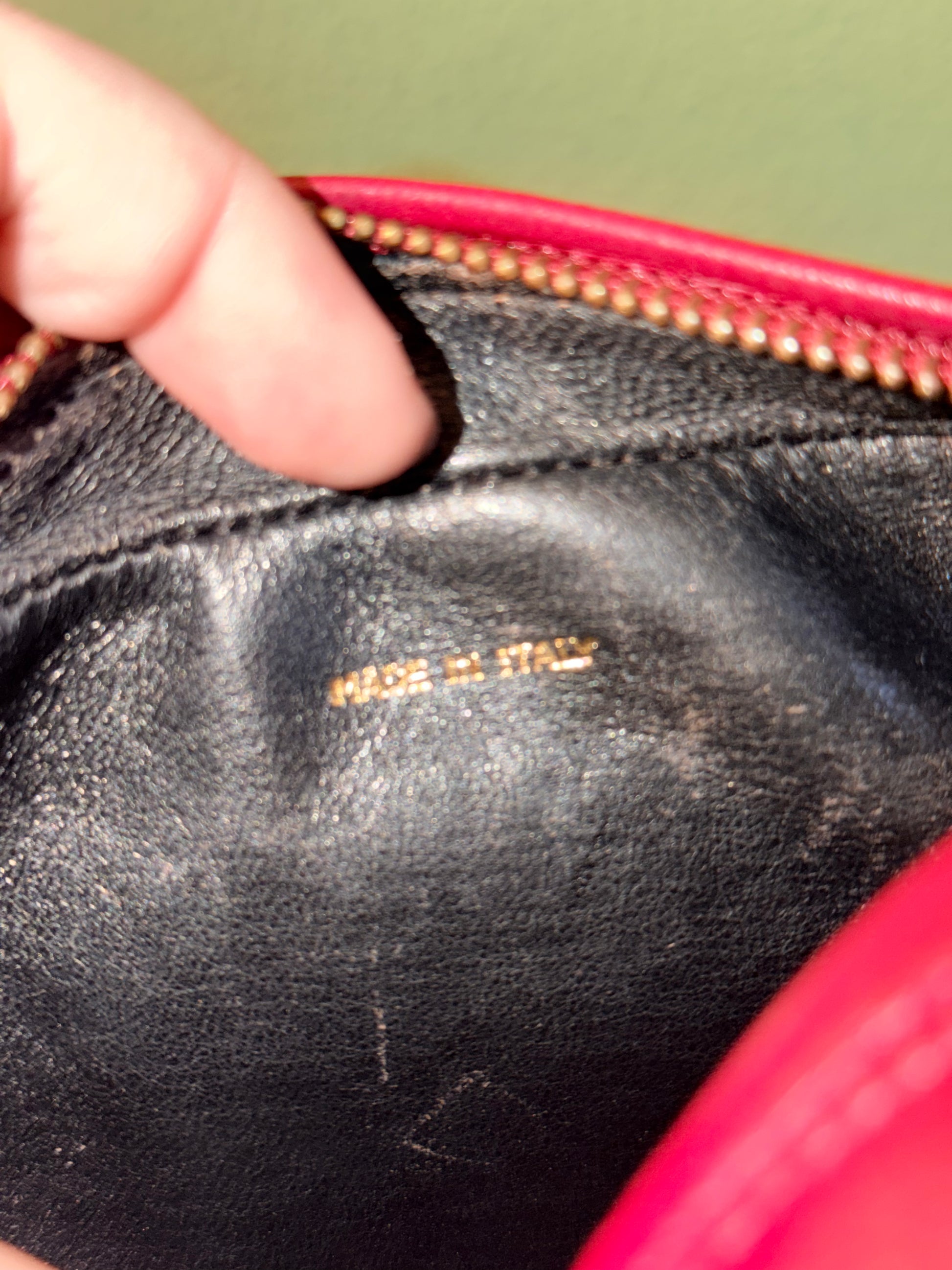 Borsa a spalla o a tracolla in pelle trapuntata rossa con metalleria placcata oro 24 kt, tasca frontale con bottone magnetico e chiusura principale con cerniera