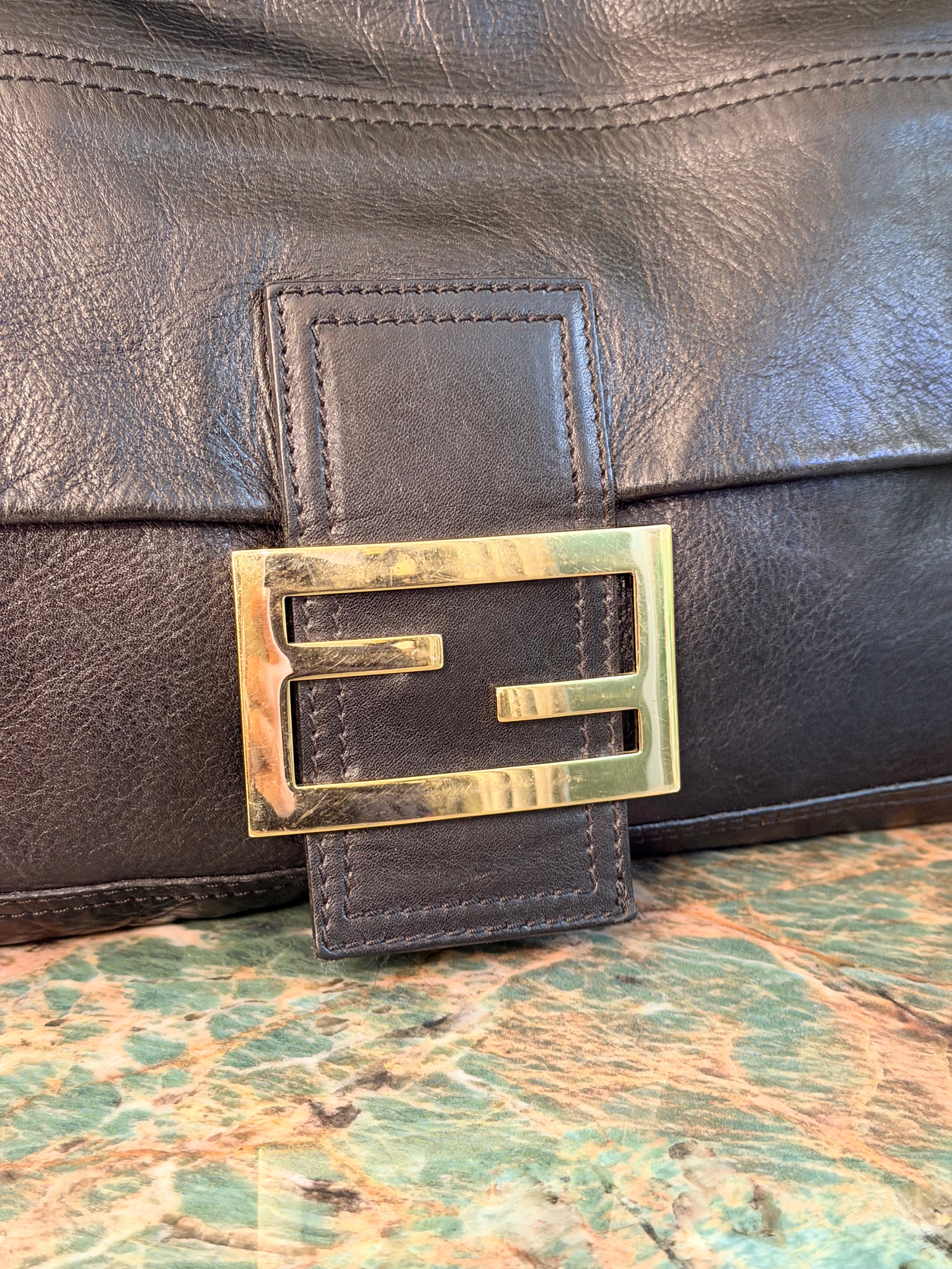 FENDI BLACK MAXI BAGUETTE CROSSBODY BAG