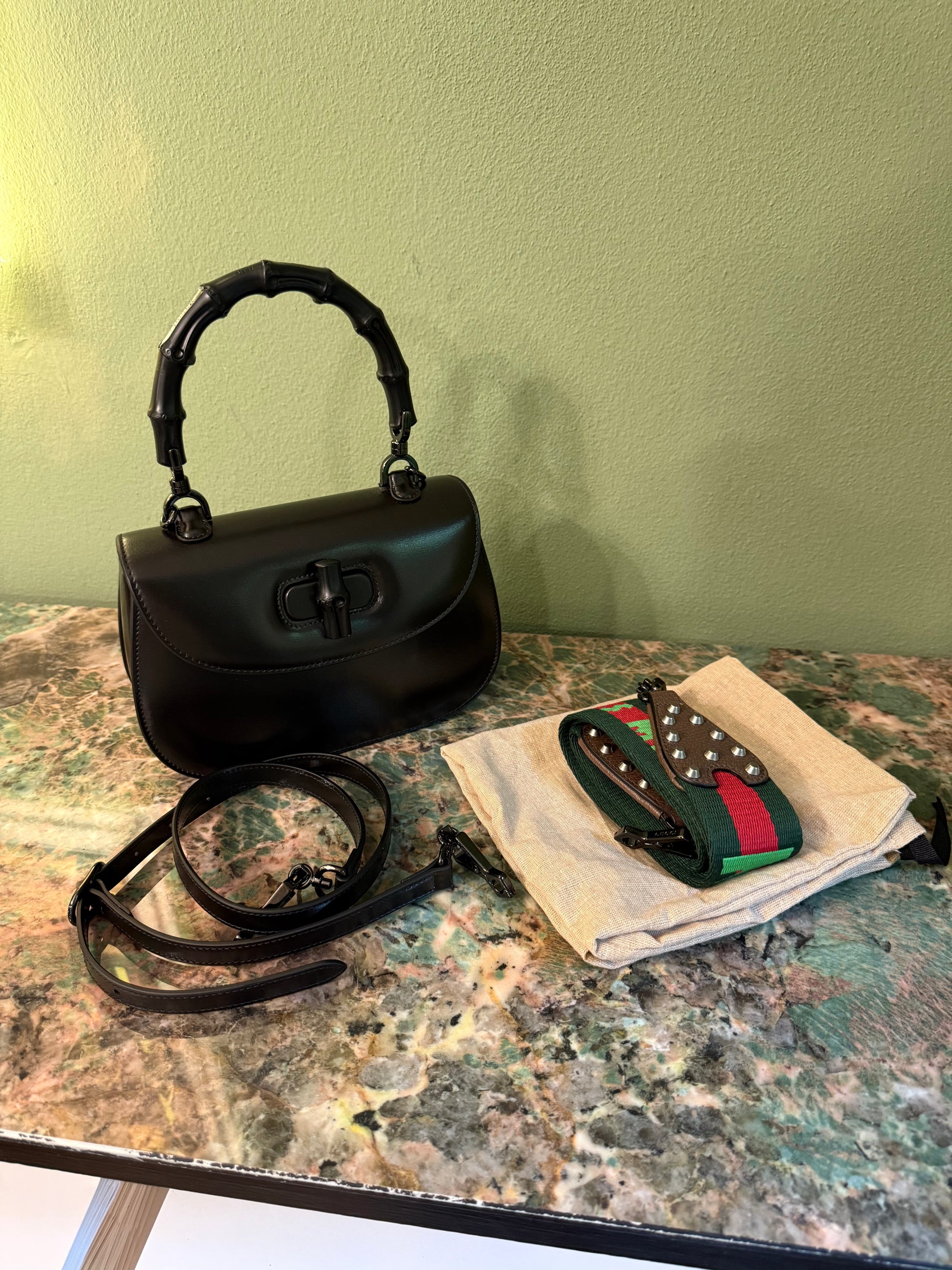 GUCCI SO BLACK SMALL BAMBOO 1947 TOP HANDLE BAG