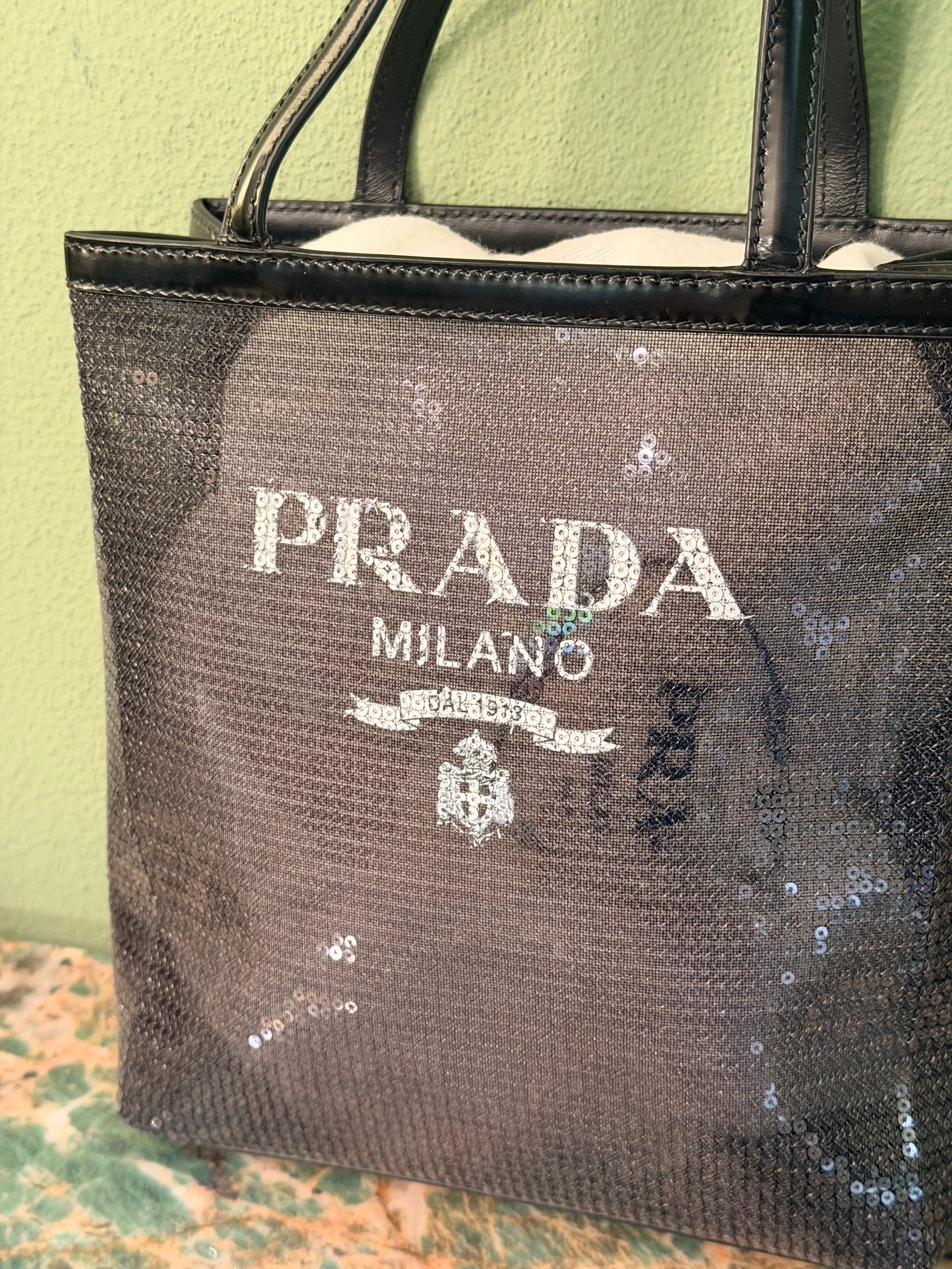 PRADA BLACK MESH SMALL HANDBAG