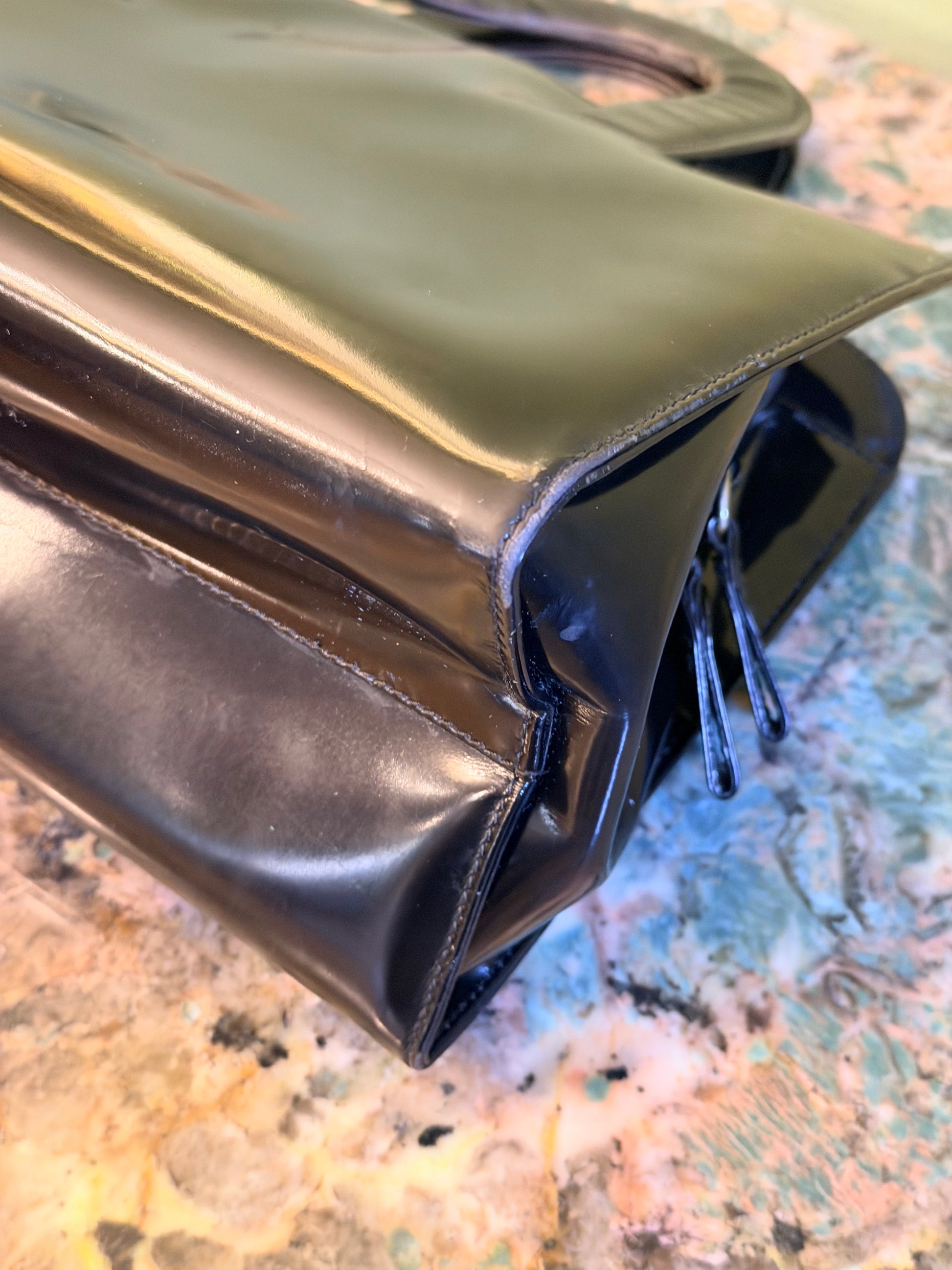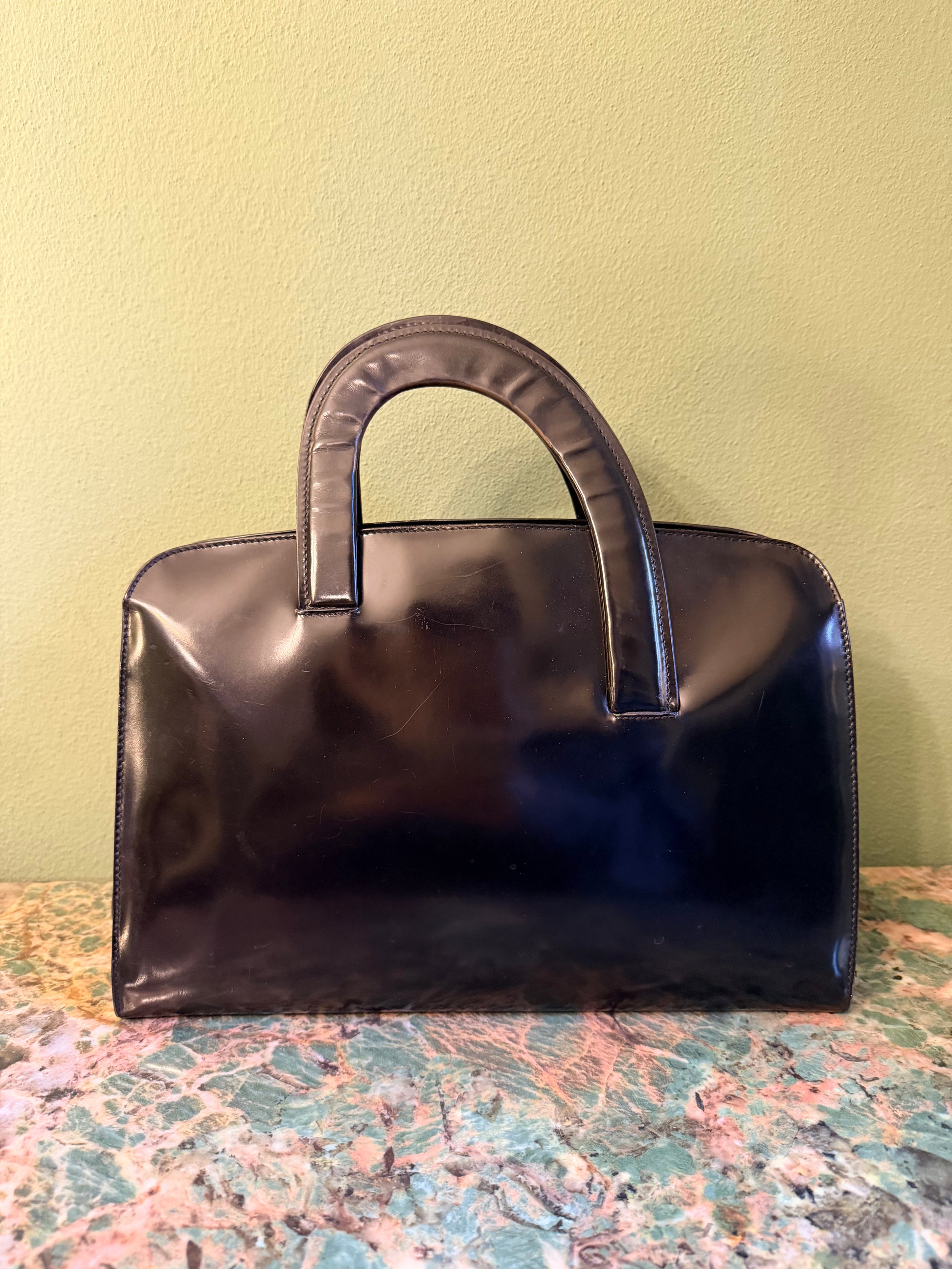 Borsa a mano in pelle spazzolata nera con metalleria argento e chiusura con cerniera
