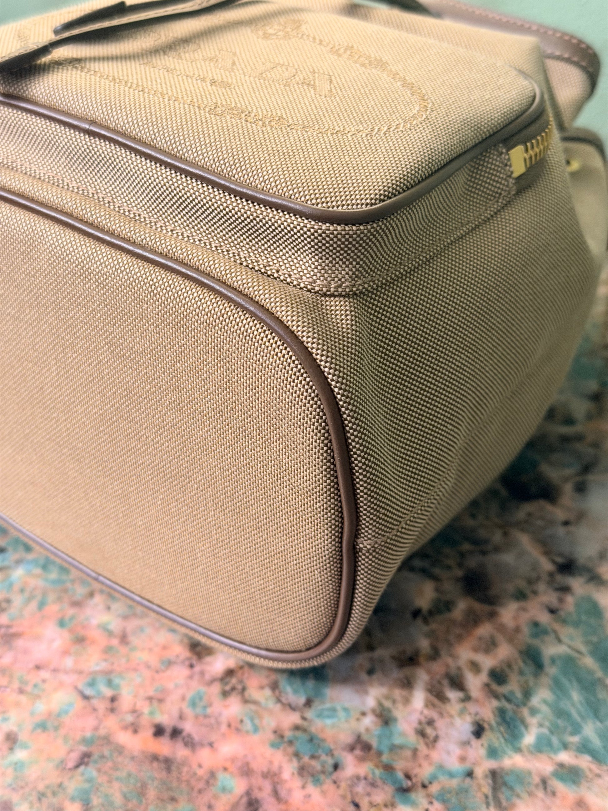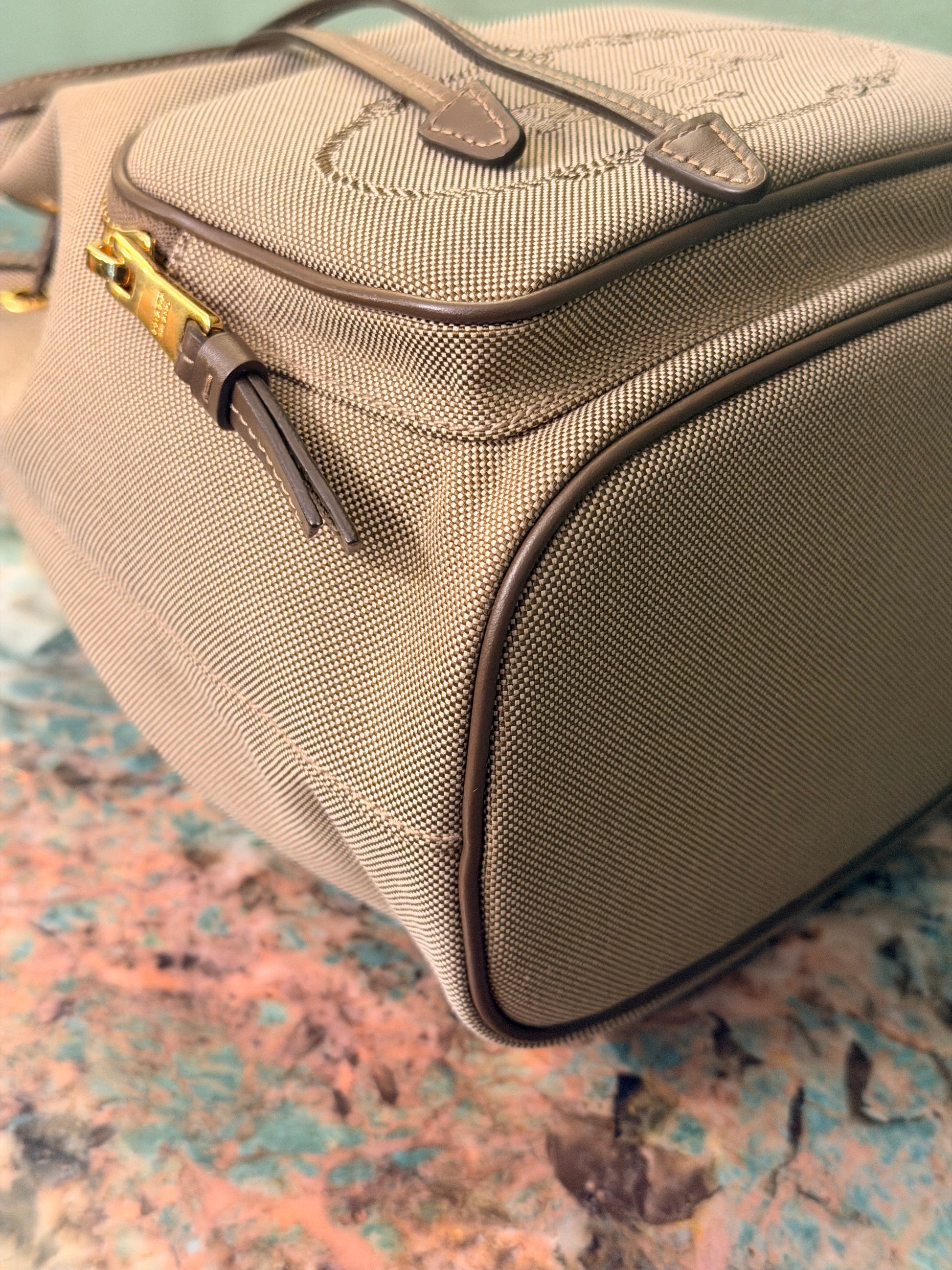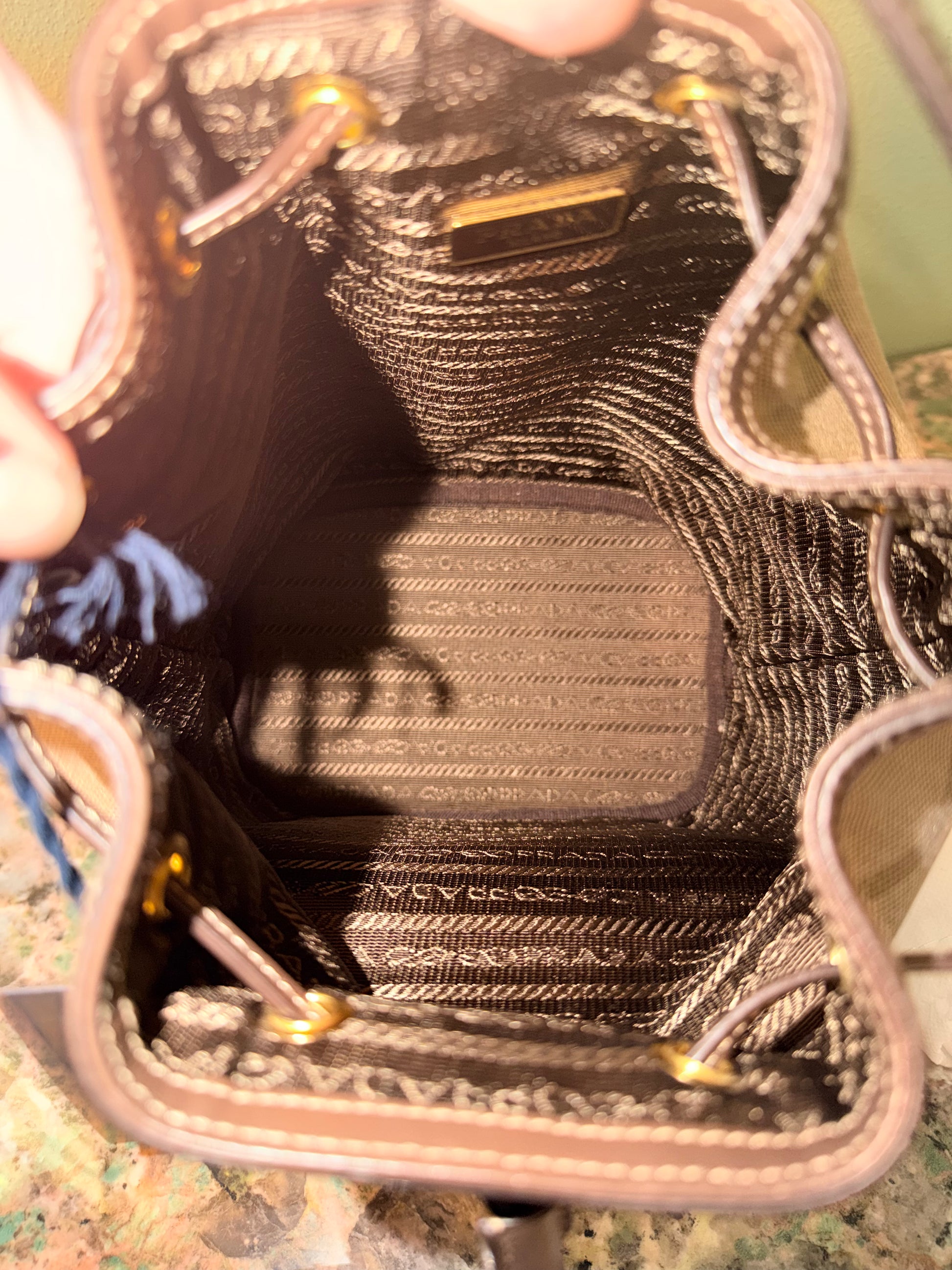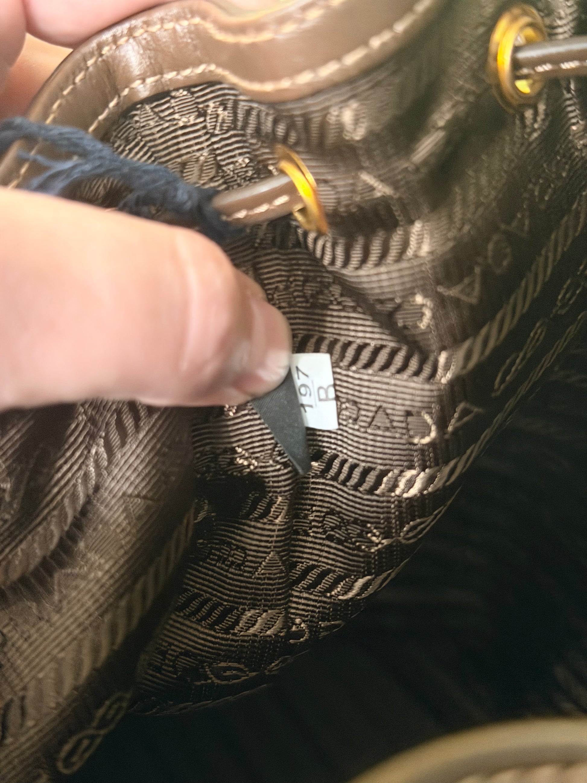 PRADA BROWN LOGO SMALL BUCKET TOP HANDLE CROSSBODY BAG