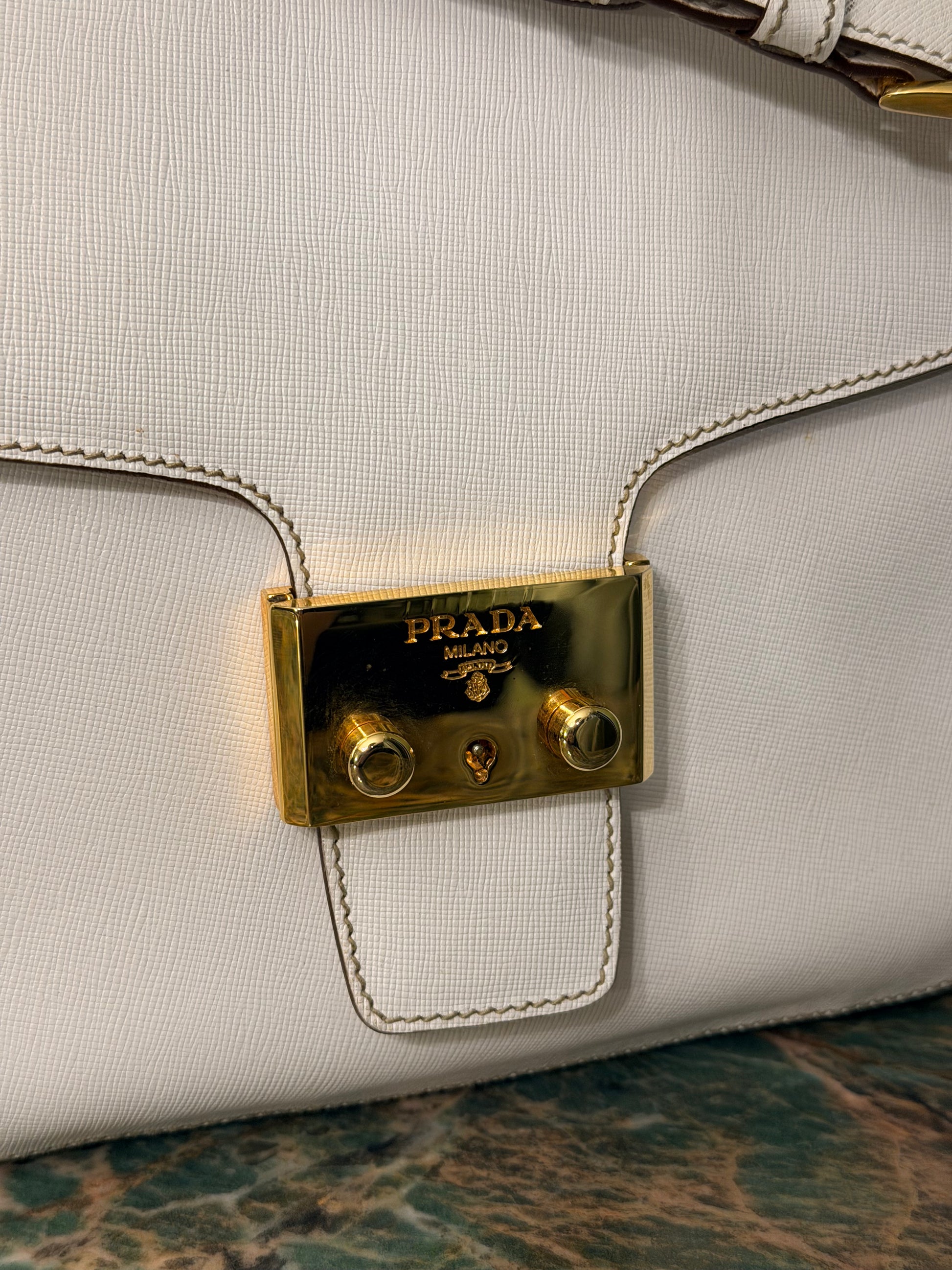 PRADA WHITE SAFFIANO SHOULDER BAG