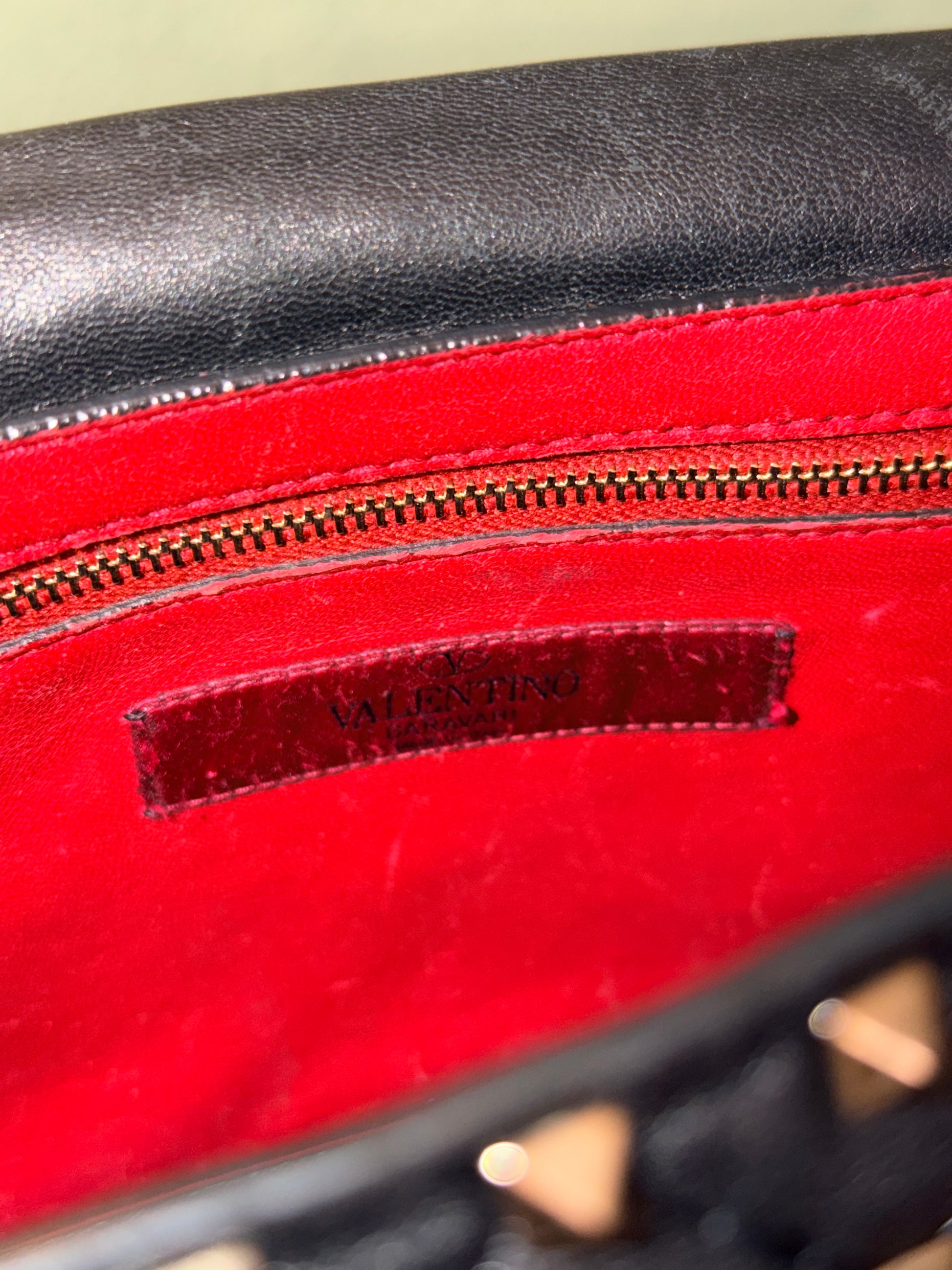 VALENTINO BLACK LARGE ROCKSTUD SPIKE HANDBAG